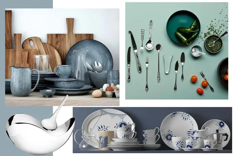 Ulikt servise i stilrene mønster og farger er også evig populært. Therese fra Tilbords er svært glad i Royal Copenhagens blå Mega Riflet servise i porselen. Dette serviset er håndmalt i et klassisk mønster i en forfriskende blå farge. En av favorittene til butikksjef Stine hos Traktøren er serviset Broste Nordic Sea i steintøy, som skaper et spennende uttrykk med sine flotte striper. Butikksjef Nina fra David-Andersen anbefaler et elegant, mønstret sølvbestikk fra Th. Marthinsen. Nydelig bestikk er gave som garantert blir brukt, og varer livet ut.