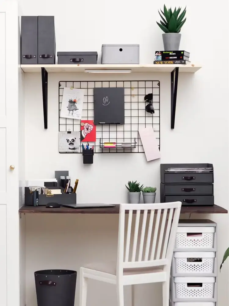 Hold skrivebordet og bokhyllen ryddig med tidsskriftholdere og permer til magasiner, rapporter og skolearbeid. En idé kan også være å henge opp en oppslagstavle eller kalender til huskelister og gjøremål. Husk at det blir ryddigere i hodet når du har det ryddig rundt deg.