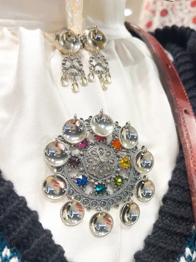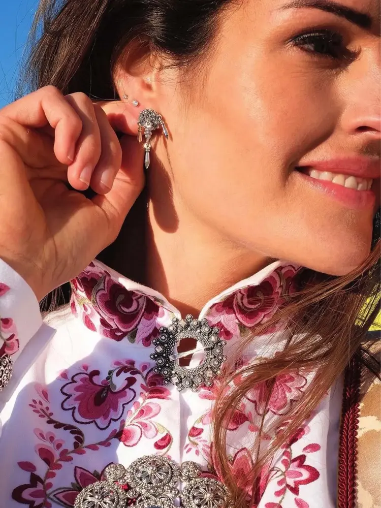 - Et tidløst tilbehør er selvsagt ringer og øredobber, forteller Sophie. - I nyere tid er det kommet så mye gøy, både for minimalistene, og de som vil ha noe stort som gjør mye ut av seg. Man kan også få ringer og øredobber med sten! Plukk en farge fra bunaden du har og la den gå igjen i smykkestenene - det blir utrolig fint!
