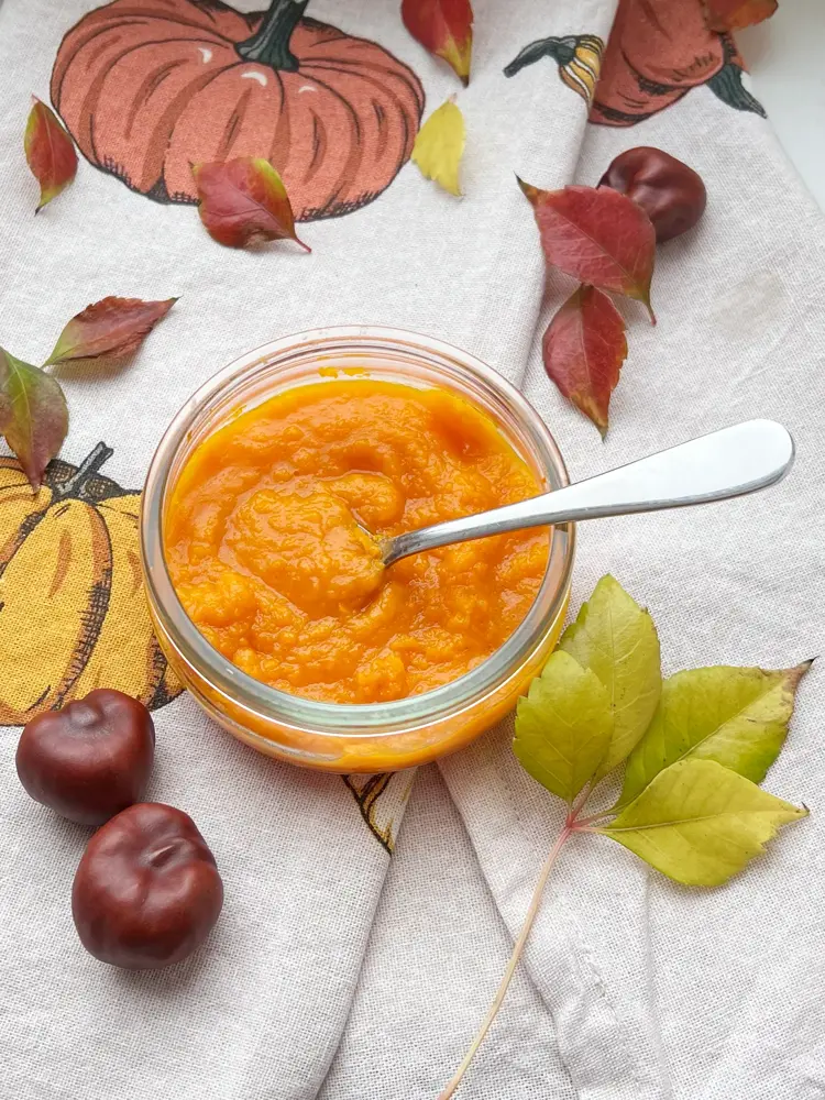 - Ta så to store skjeer av gresskarpurén i en kjele med krydderblandingen og Monin pumpkin spice syrup. Resten av puréen kan du enten bruke i en deilig middag, eller fryse i isbitformer til senere.
