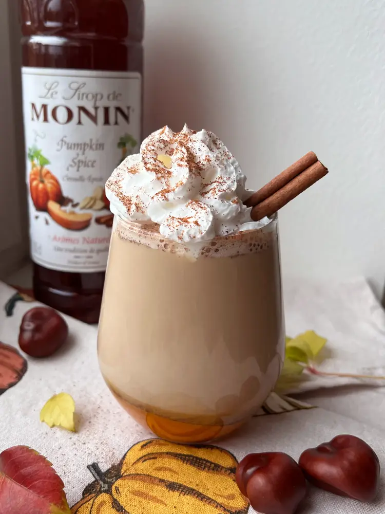 - 1-2 ss Monin sirup fra Storo Ølutsalg med smak av Pumpkin Spice Latte