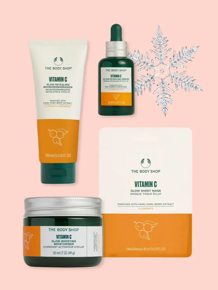 Gi huden litt ekstra glød i den kalde perioden med Vitamin C-hudpleiserie fra The Body Shop. Produktene er laget av minst 90 % naturlige ingredienser og er beriket med camu camu-bærekstrakt, en av naturens rikeste kilder til vitamin C.