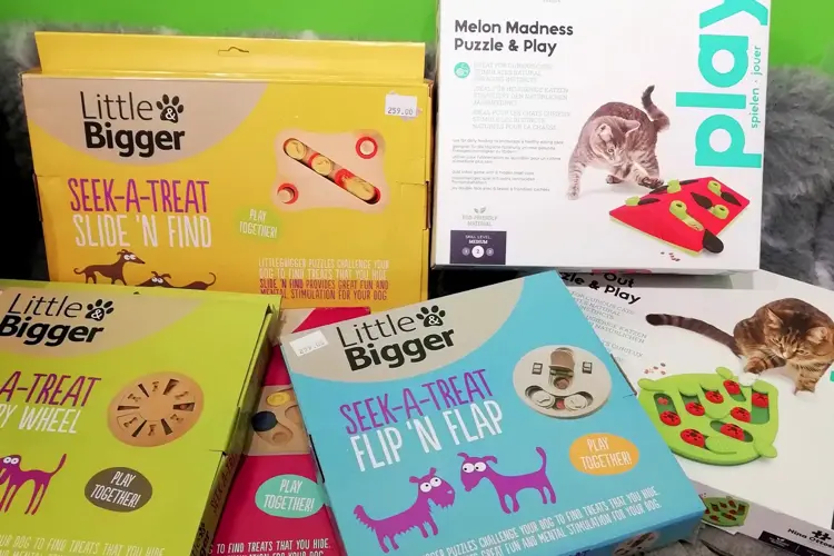 La kjæledyret få bryne seg på aktivitetsspill! Da får dyret både hjernetrim og varierte muligheter til å få utløp for energien sin. Sett frem spillet, og se på mens dyret prøver seg frem, tenker og lærer - og blir belønnet med en godbit!