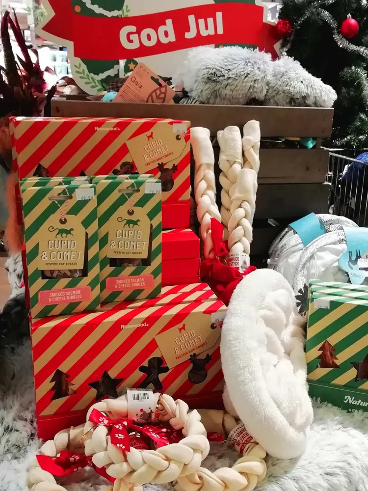 - Er det noe som alltid er stas, så er det noen godbiter som kjæledyret kan kose seg med, sier Ina fra Musti. - Vi har snacks for hunder, katter og gnagere. Vi har også en helt spesiell juleserie med godsaker for hunder og katter fra Rosewood. Serien er veldig fin for den som vil ha litt ekstra julestemning.