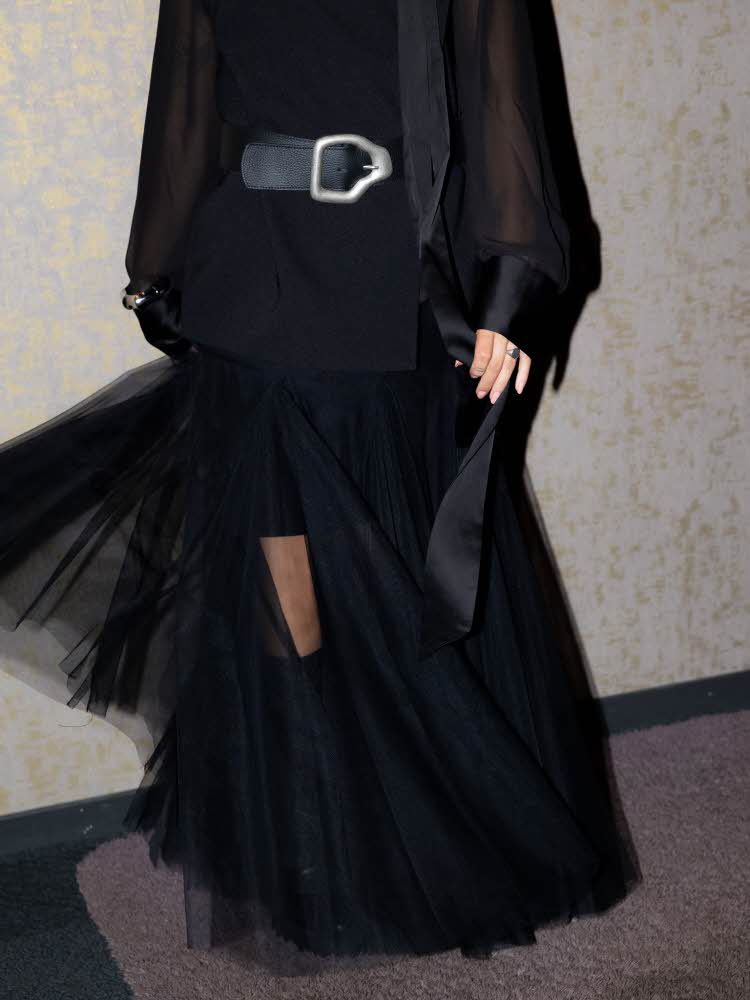 Det handler om å kombinere feminine detaljer med noe litt røffere. En gjennomsiktig bluse blir kul med kraftige armbånd, mens en skinnende satengkjole føles ny sammen med albuelange hansker.