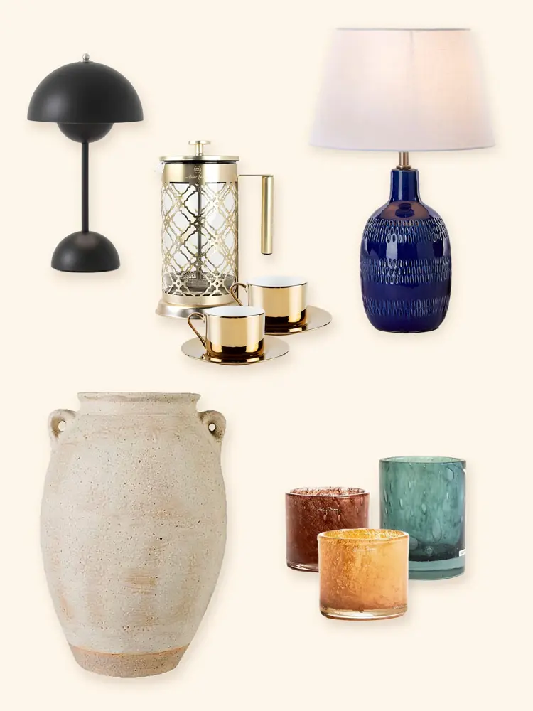 Finn dekorative elementer som gir hjemmet et personlig preg og det lille ekstra. Lekre krukker fra Camilla Pihl hos KID eller gylne presskanner fra Magnor hos Tilbords kan være en sjarmerende overraskelse, som hun ikke har tenkt på selv. Hva med å matche det med et par stilige gullkopper fra Kremmerhuset?.