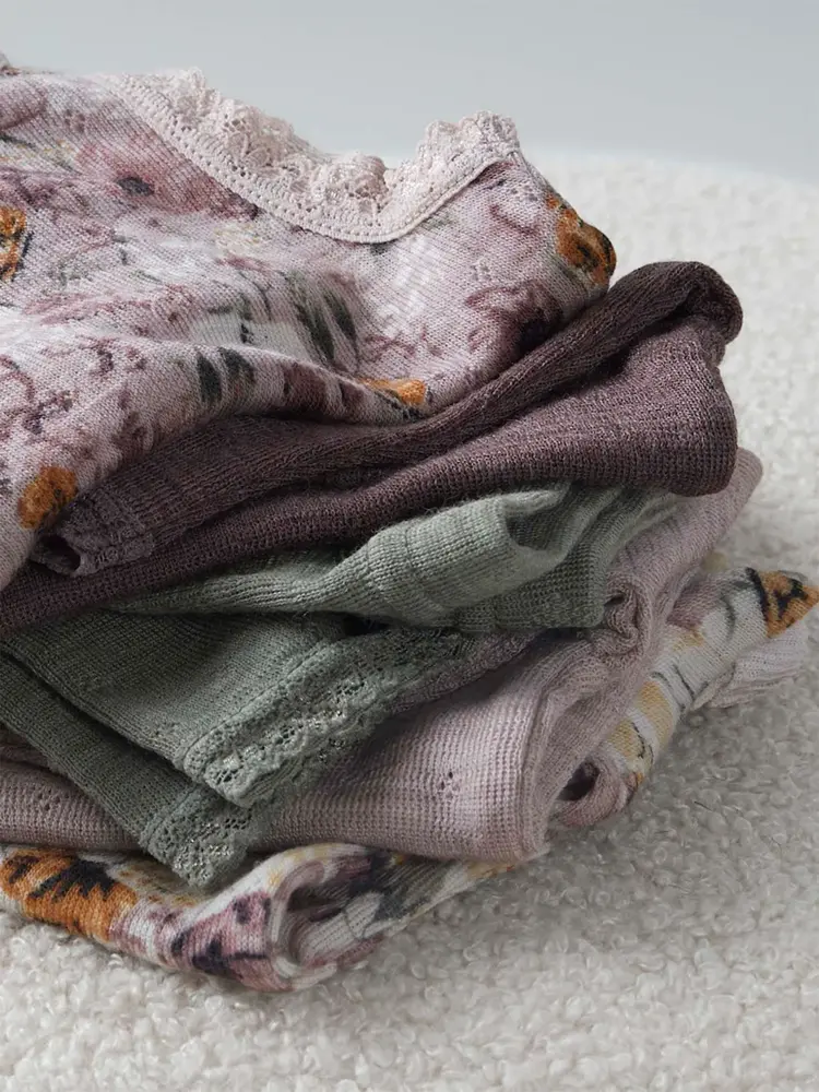 Når det begynner å bli kjølig ute er det viktig å bruke ull innerst. Ull isolerer, og transporterer fukt slik at barnet holder seg varm og tørr gjennom hele dagen. Har du et barn med atopisk eksem kan ull irritere huden. Da kan tøy i bambus være et godt alternativ.