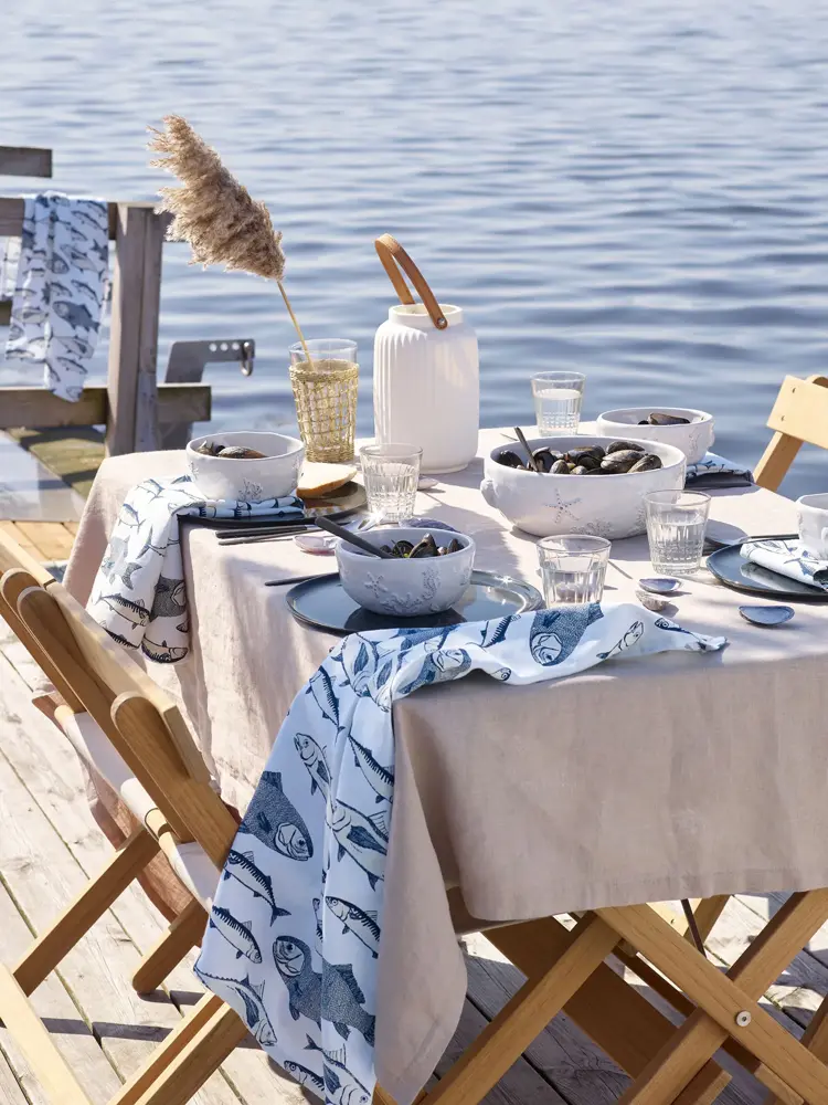 Når uteplassen er innredet handler det om å nyte, og utnytte den til det fulle. Med dekte bord er det tid for å ønske gjestene velkommen.