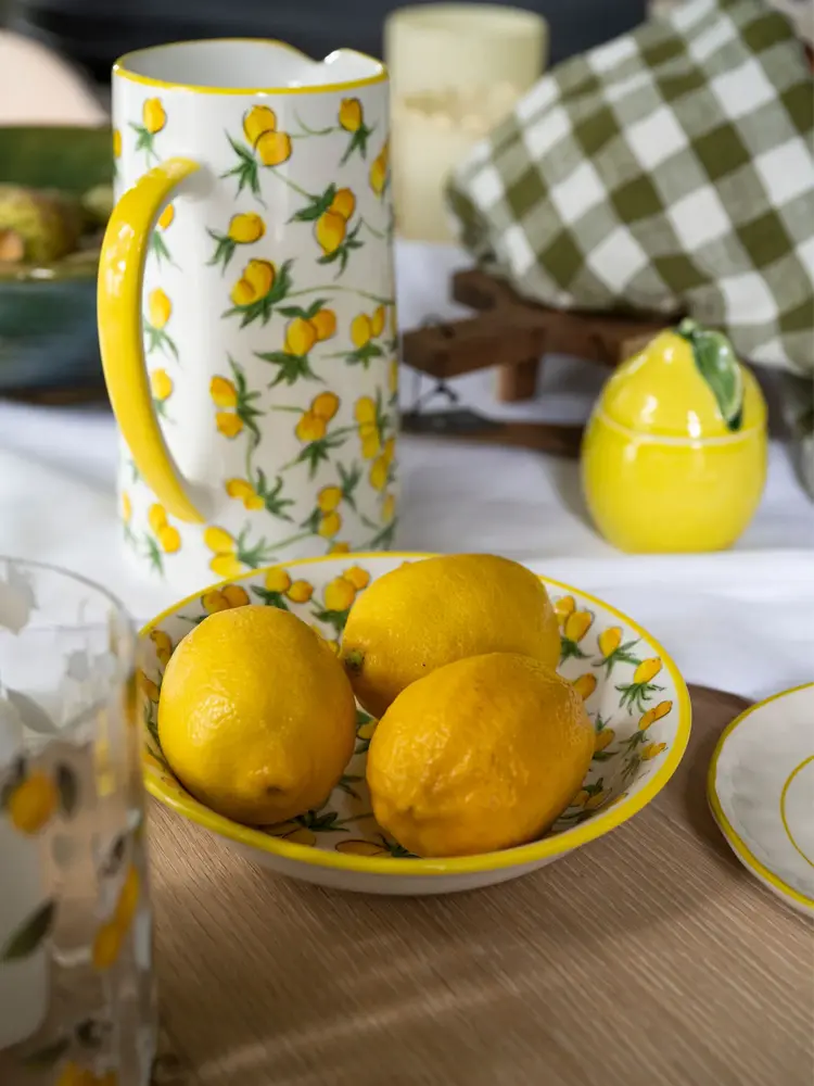 Blant vårens favoritter fra Kid Interiør finner vi den tropiske dekorkrukken i grønt, den elegante Flower-vasen og det stilige Lemon-drikkeglasset, som tilfører et friskt pust til borddekkingen.
