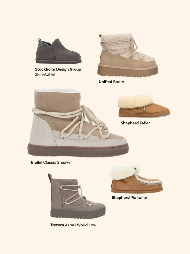 Så fort du kommer opp av det iskalde vannet, er det godt å stikke føttene ned i myke, varme og solide sko! UGGS har vært veldig populære de siste årene og det har kommet mange nye modeller. De er også laget av ekte saueskinn og pels som gjør at de varmer godt.