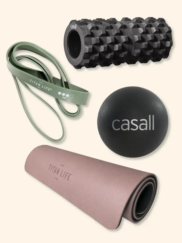 Vil du starte med trening hjemme hos deg selv? Du trenger ikke all verdens utstyr for å få til en god treningsøkt hjemme. Ifølge Linn kan du komme godt i gang med en matte, noen vekter og par treningsstrikker eller minibands. Har du dette, kan du få til veldig mange forskjellige treningsøvelser. Linn anbefaler også å bruke foamroller for muskelavslapning og triggerpunktball for dyp massasje til oppvarming eller restitusjon etter en hard treningsøkt.